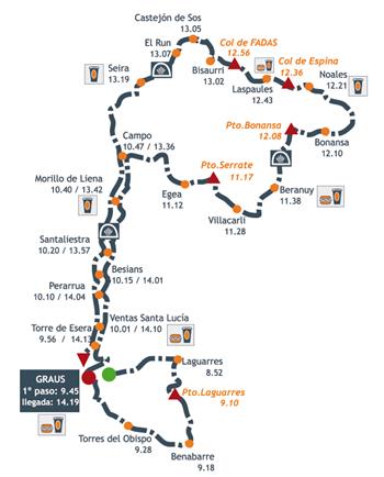 El recorrido corto tiene una distancia de 133 kms y se suben 2 puertos ("Castillo de Laguarres" y "Serrate - Las Vilas del Turbón")